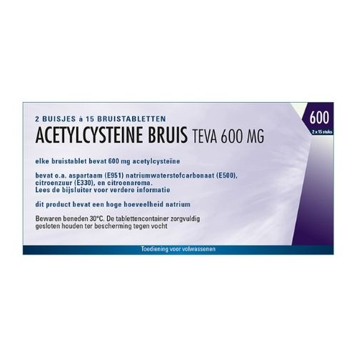 Teva Acetylcysteïne 600mg Bruistabletten 2x15 stuks